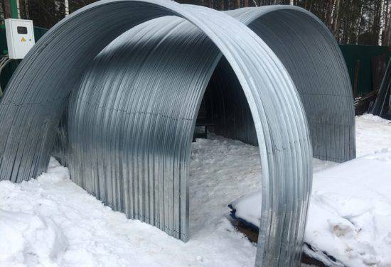- Теплица состоит из цельных дуг расположенных друг от друга на расстоянии 67 см, цельносварных торцов и продольных соединительных труб, что значительно упрощает сборку и установку. Болтовое соединение.
